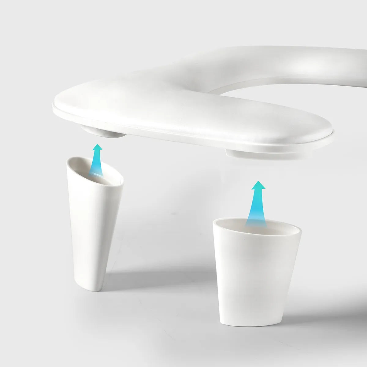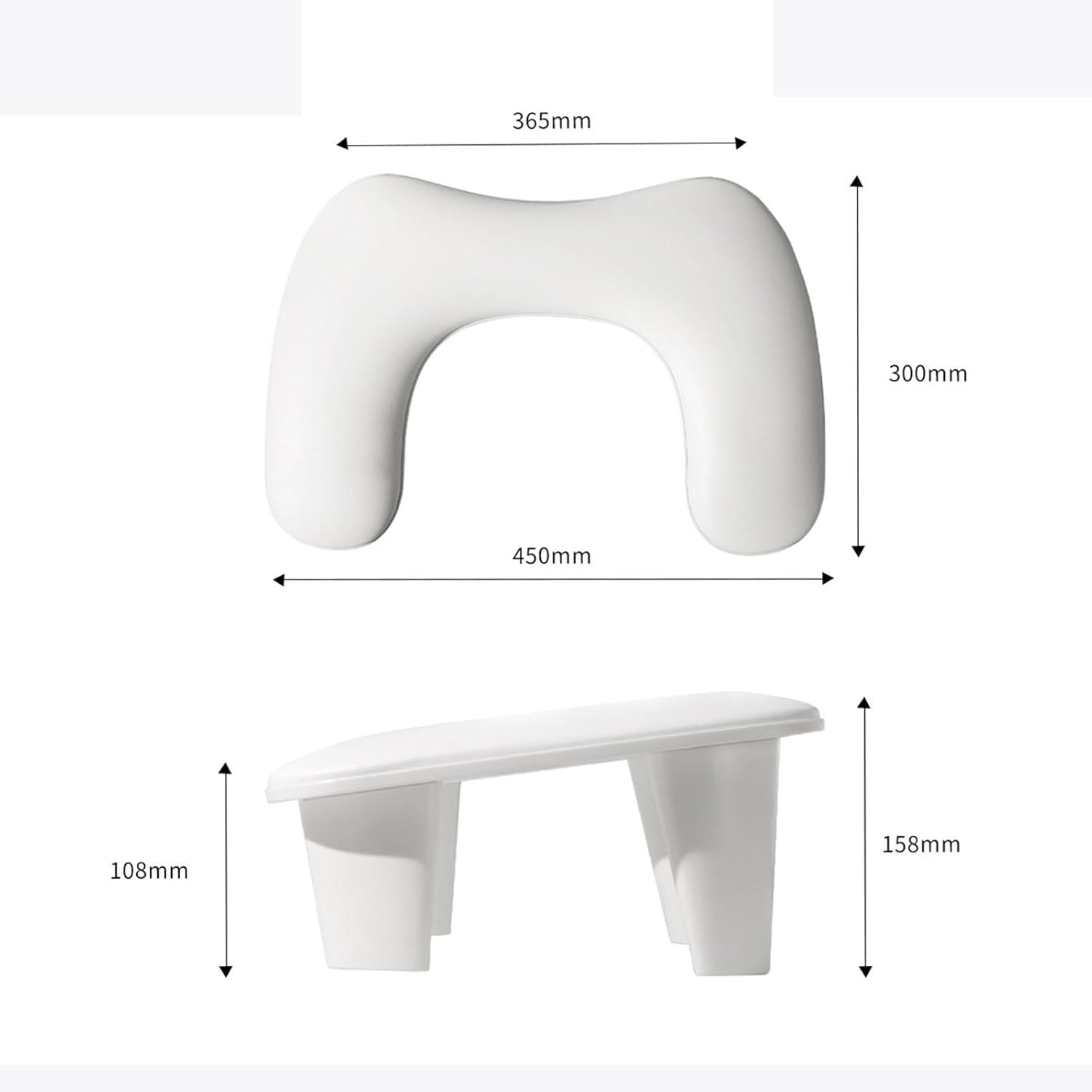 Podłokietnik został zaprojektowany w ergonomicznym kształcie litery U, co pozwala na wygodne podparcie dłoni i nadgarstków podczas manicure. Specjalne nachylenie zapewnia naturalne ułożenie dłoni, zwiększając komfort zarówno dla klienta, jak i stylisty paznokci