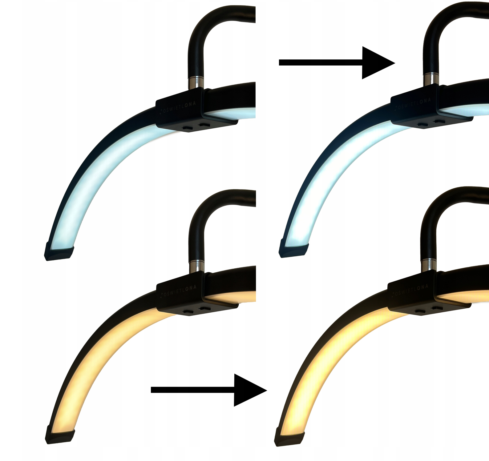 Możliwość dostosowania jasności na 10 poziomach oraz temperatury barwowej w zakresie od 3200K do 5600K na 5 poziomach zapewnia pełną kontrolę nad atmosferą oświetleniową
