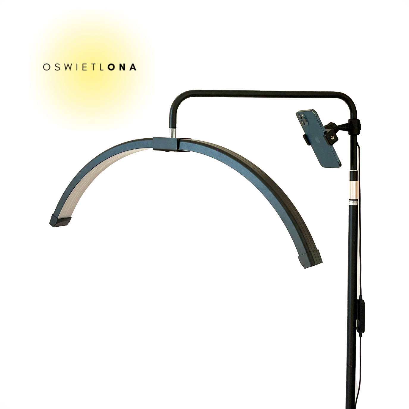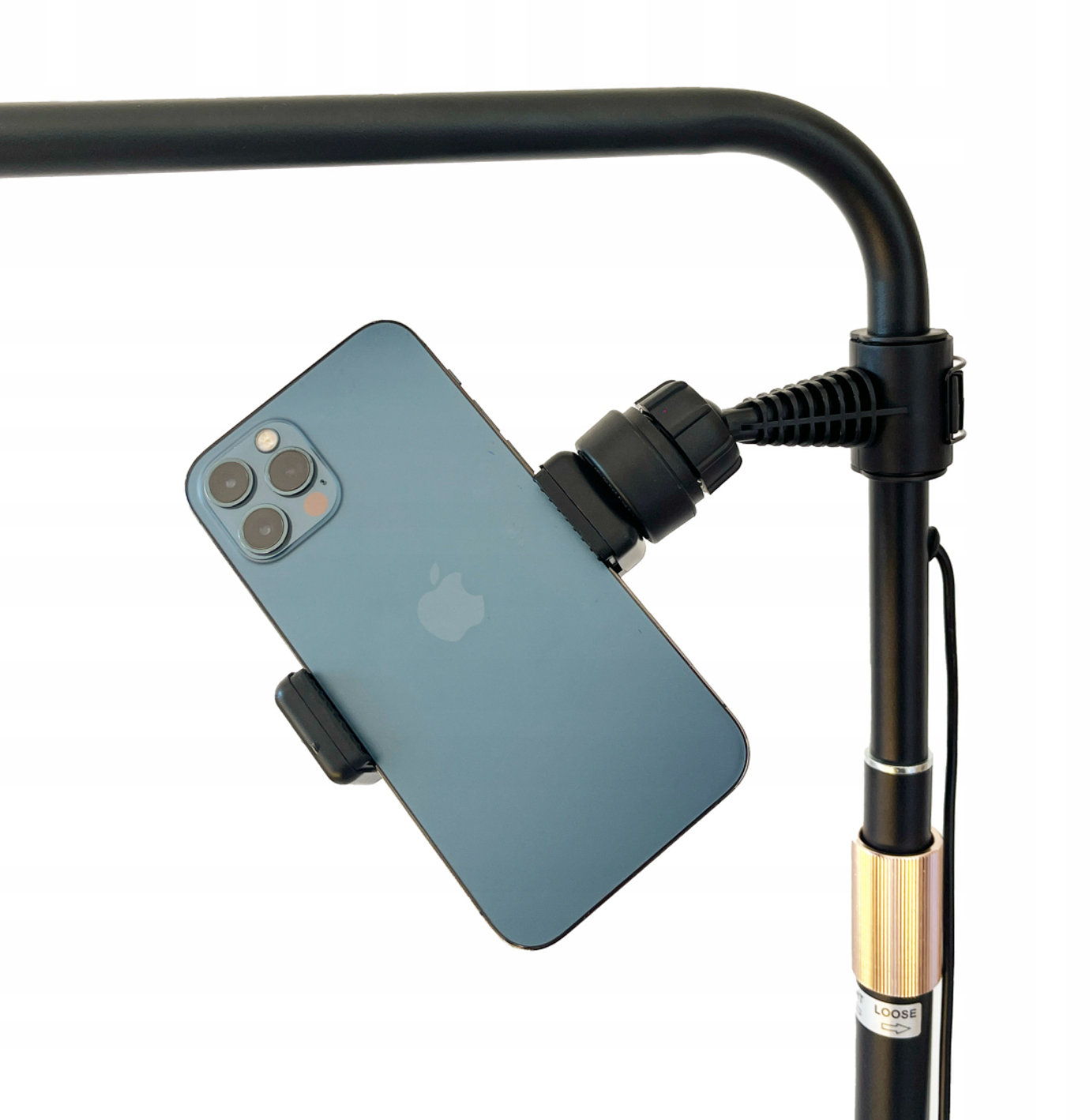Konstrukcja umożliwia obrót o 360 stopni, ułatwiając dostosowanie kąta oświetlenia do konkretnego kadrowania podczas nagrywania wideo czy prac kosmetycznych. Uchwyt na telefon w zestawie